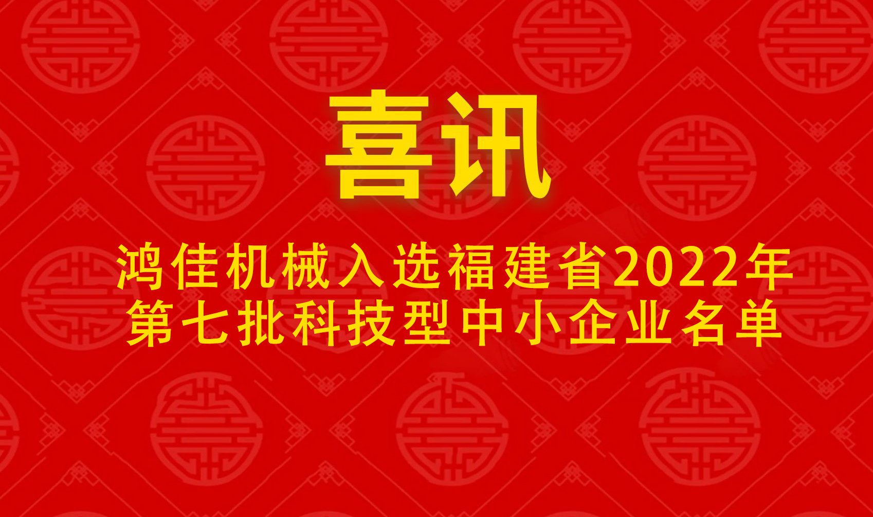 喜訊 | 鴻佳機械入選福建省2022年第七批科技型中小企業名單